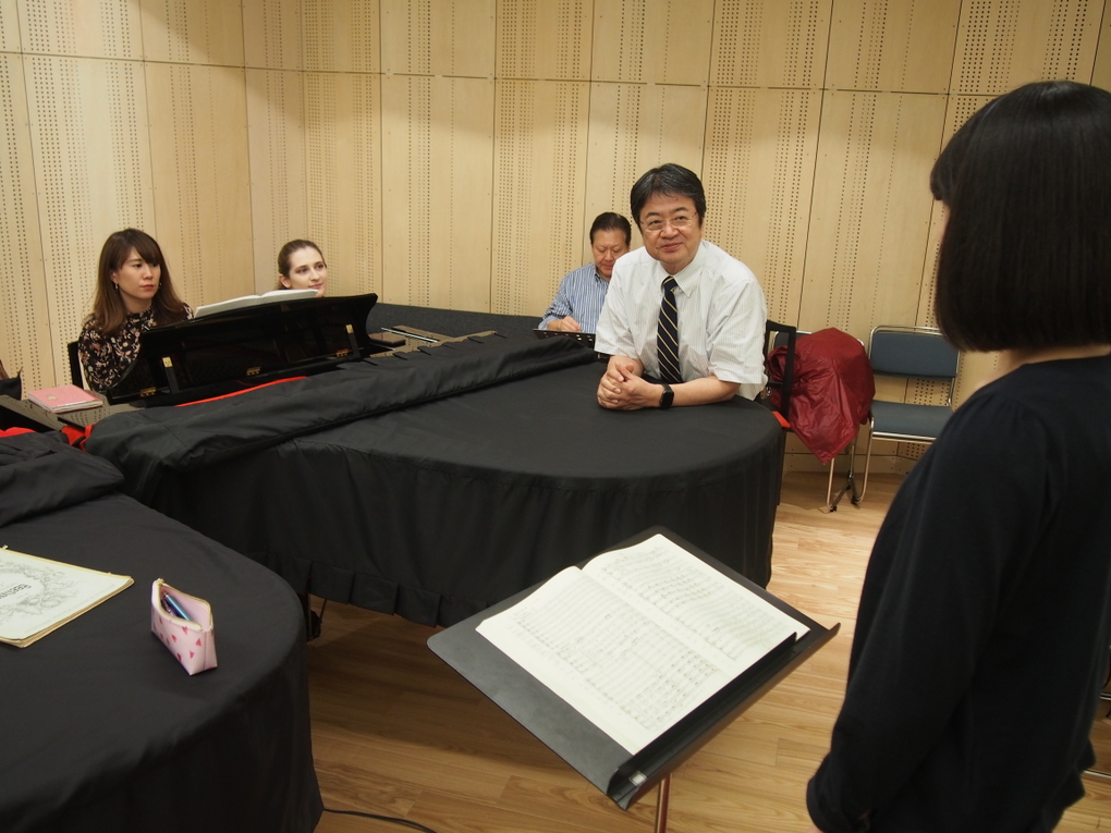 学生一人ひとりに合わせた課題を選び実施させる。学生らに答えを与えるのではなく、各自が意思をもって「今自分が何をやらなければならないのか」ということを探していけるような指導をする。学生にはレッスン時間以外の時間をいかに有意義に過ごすか考えてほしい。指揮の基本、応用、実践を学ぶのはもちろん、音楽にどのように向き合うのか、学生同志がどのように切磋琢磨していくのか、音楽以外の生活についてもおろそかにしないでほしいと考えています。
