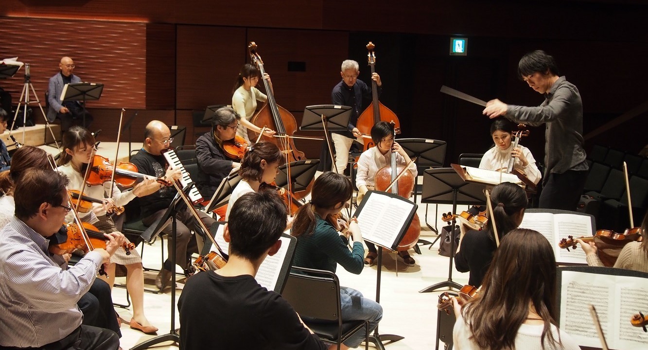 指揮専攻では他専攻の教員や学生の協力のもと、学生が自由参加型のオーケストラを振るという稀有なレッスンを実現させています。学生は「個人レッスン」などで学ぶ指揮のテクニックやスコアリーディング、音楽学的な理解などすべてを集中させるのはもちろん、リーダーであることの意味、コミュニケーションの本質などを試行錯誤しながら見つけていきます。また国内外で活躍する演奏家や音楽専門家を特別アドヴァイザーにむかえることで、忌憚のない現場の生の声を聞く機会ともなっています。